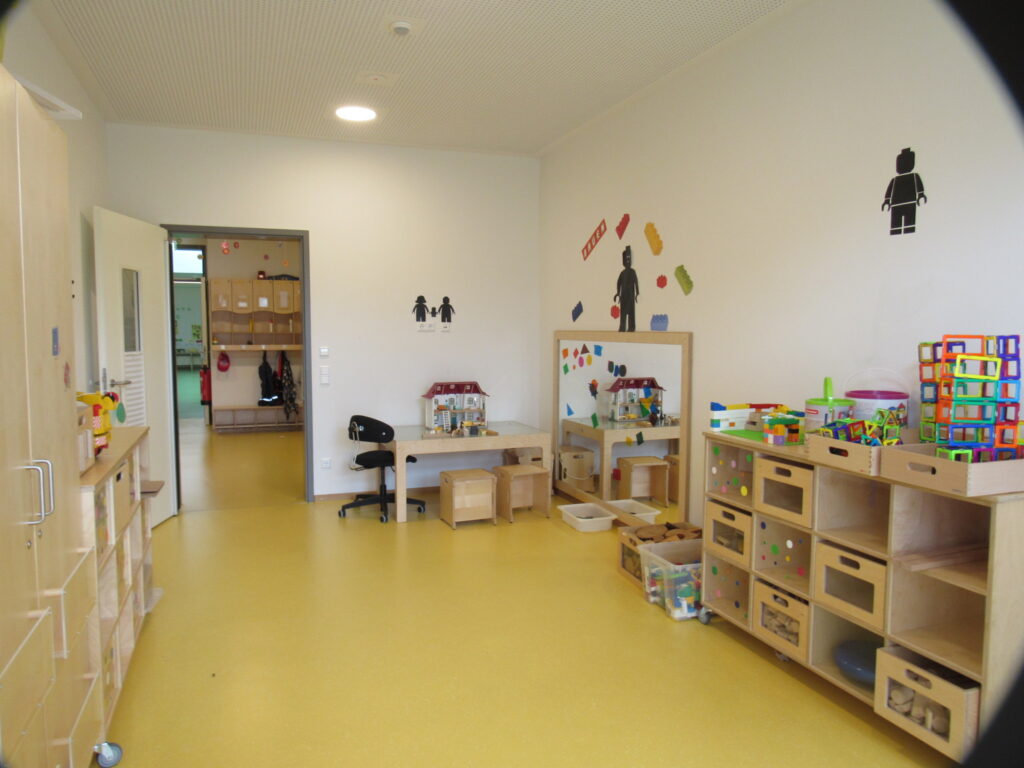 Ein Raum, der zum Bauen und Konstruieren einlädt. Mit vielen verschiedenen Materialien werden die Kinder dazu angeregt.
